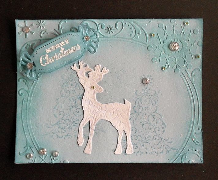 It must be lovely having such beautiful animals wandering through your neighbourhood Debi, they're obviously great for inspiration because your card is gorgeous. I love the blue background with all the inking, stamping and embossing, it shows up the die cut deer perfectly.