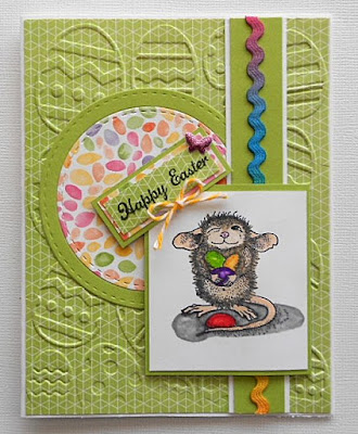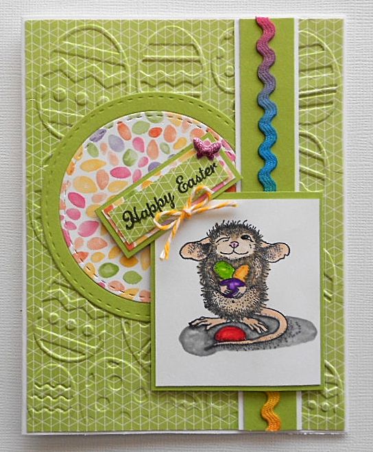 ReplyDeleteThis is a cute stamp, so glad you shared your card with us. Love the embossed background and the circle die with all the jelly beans, perfect! Thanks for joining the fun at the House Mouse and Friends Monday Challenge.