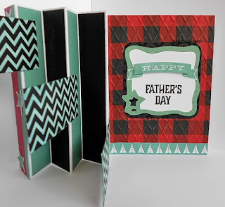 I've used papers and stamps from the CTMH Jack Workshop on the Go, paired with Ruby, Black and Juniper cardstock. I also used some retired black fundamental paper. The flip side is actually a black and white zig zag pattern, but I sponged the white part with juniper ink. The letters and frame are cuts from the CTMH Artbooking cricut cartridge.