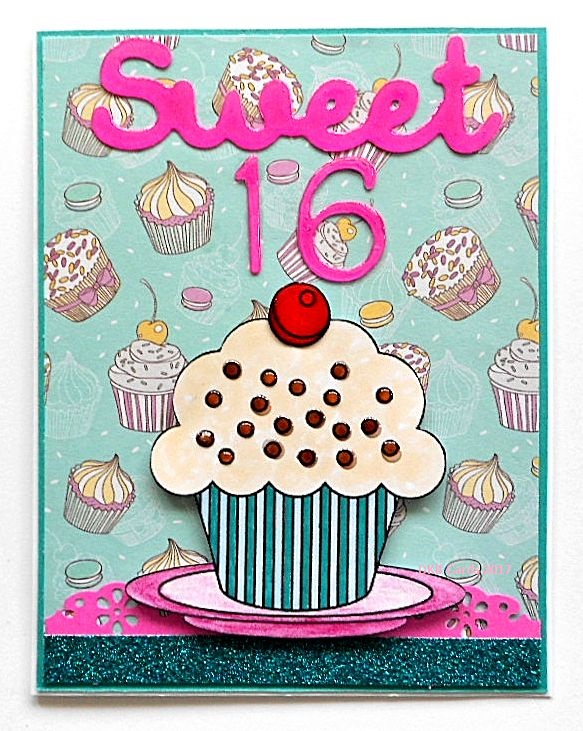 I chose to use a wonderfully yummy looking cupcake image for my DT card. It is a graphic from the Tea Time Set by Lemon Elf Studio at My Grafico. There are also tea pots, tea cups, tea bags, and teaspoons included in the set of 15 images.