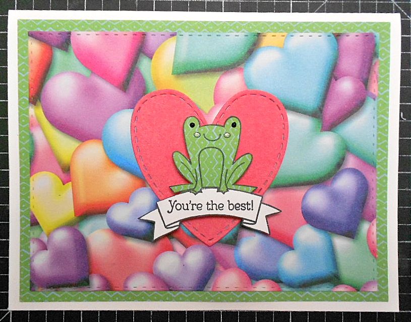 In going through my Valentine stash, I came across this very colorful heart paper. Paired with a frog stamp from CTMH, it makes a cute Valentine card.