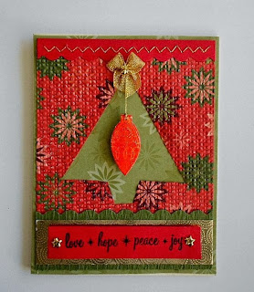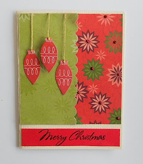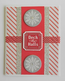 Using some scraps of retired CTMH paper I found while clearing the dining room table for Thanksgiving dinner, I made up this Christmas card to add to the stack waiting to be addressed and sent out. I fussy cut the stamped ornaments and hung them from the card with gold embroidery thread. I specifically put 8 dots of red glitter gel on the flowers of the DP so I could enter the card in the CASual Fridays Challenge #121, which requires that you use 8 of something on your card.