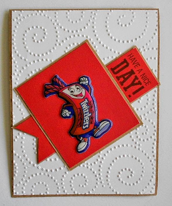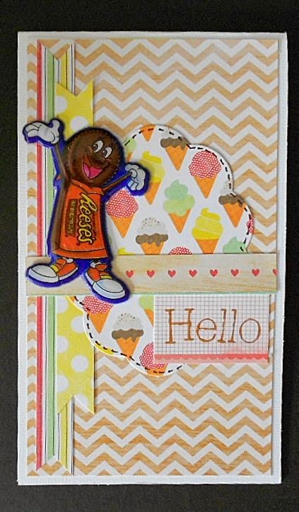 I have returned, as promised, to complete this post. If you follow my blog, you know how I feel about Tall & Skinny cards. But it's the last Monday of the month, so a Tall & Skinny card it is. We are heading to the shore next week and I know we'll be consuming our share of ice cream cones. And I love the ice cream with the tiny peanut butter cups inside. Yum! Ice cream and candy together. What could be better?