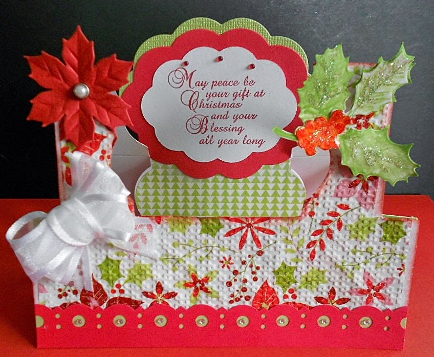 I used CTMH paper, stamps, glitter gel and gems, with silver holly Dazzles on the side panels.