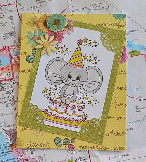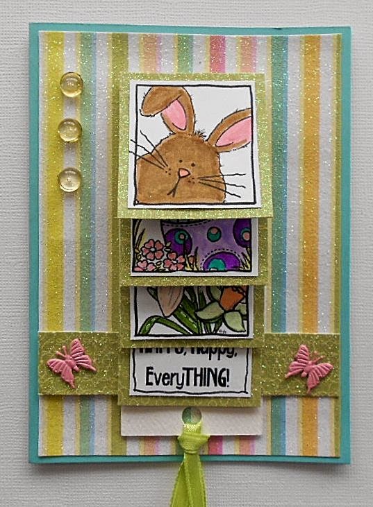 The image has been printed twice, with portions fussy cut and popped. I couldn't resist a little glitter on the eggshell 'hat'.