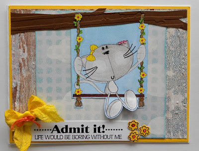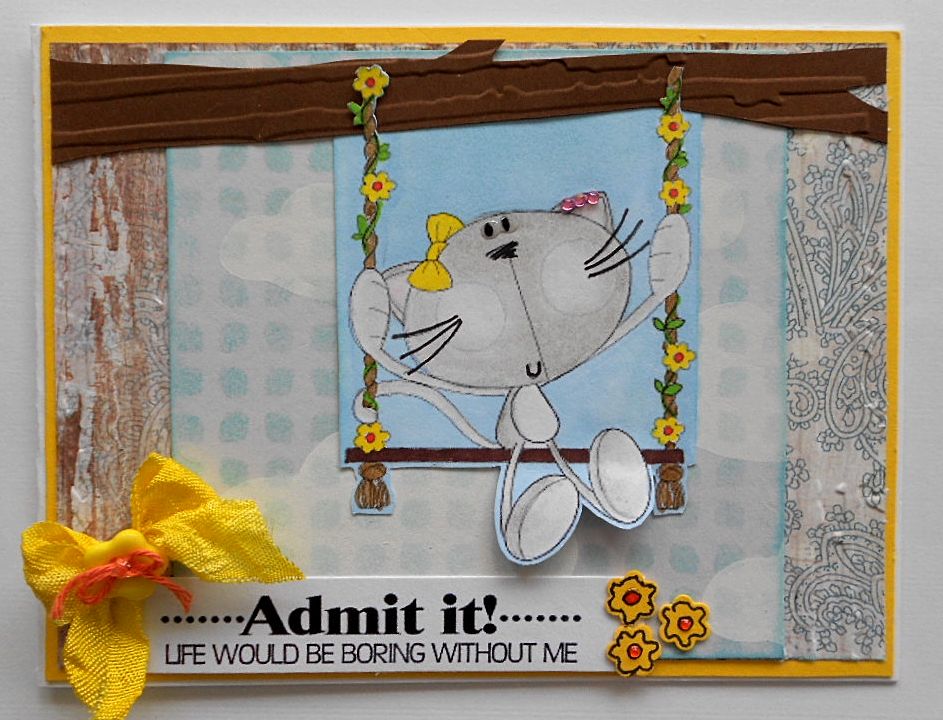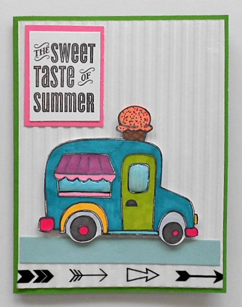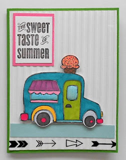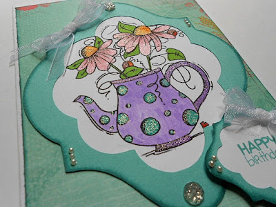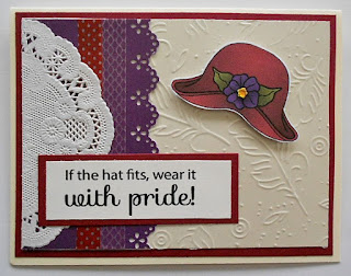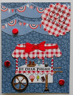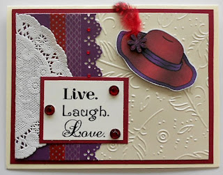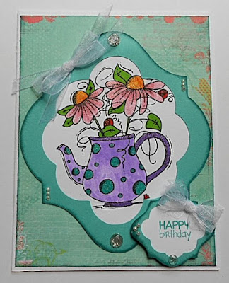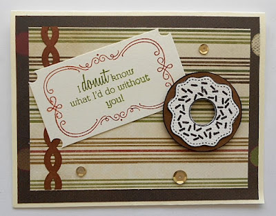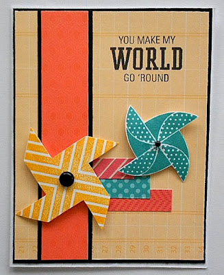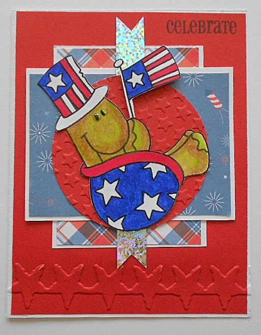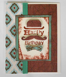 I've used some retired CTMH paper called Blue Ribbon. It's a fun summer pattern. Stamps are also CTMH, and I used the CTMH Artiste Cricut Cartridge to cut the oval.