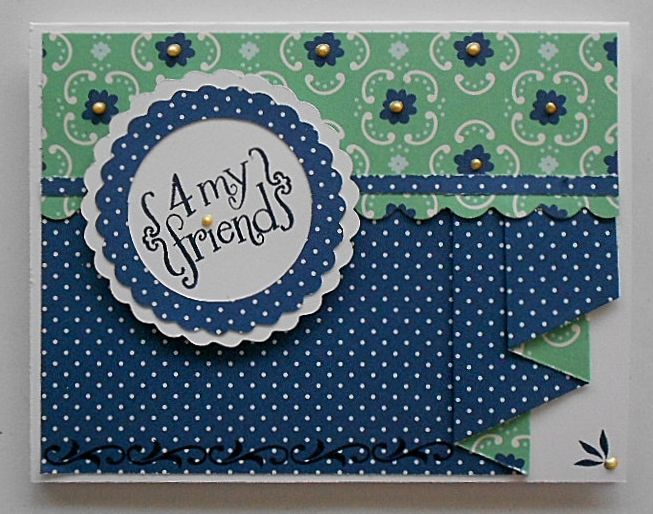 The stamps are CTMH. The white scalloped circle and navy layer are cuts on the CTMH cricut Art Philosophy cartridge. And I added dots of buttercup liquid pearls to the flower centers.