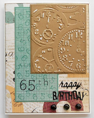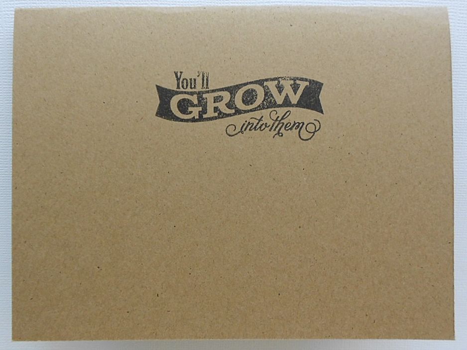 I cut the front off the Tall & Skinny card, trimmed the sides just a smidge, took a normal A2 Kraft card base, stamped Happy Anniversary at the top (DRS stamp cut in half so I could put the words side by side) and adhered the MM card front below it.