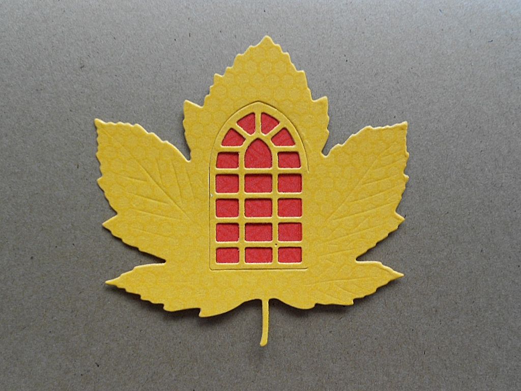 Yesterday I checked to see what the new colors are for this week's Color My Heart Color Dare Challenge. They are Honey, Cocoa, and Poppy (I substituted cranberry) - nice fall colors. I pulled out some Fundamental papers, which I love, and die cut this leaf.