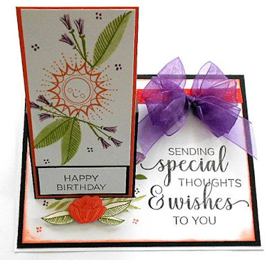 No stamping on the front, just a sponged die cut flower, sentiment sticker, and bow. But inside I stamped this pretty CTMH sentiment.