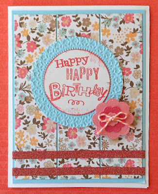 The papers are from the new Close To My Heart Chelsea Gardens paper pack. The flowers begin as 8 - 2" squares. The Happy Birthday stamp, embossing folder and bling are also from CTMH.