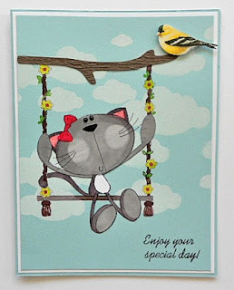 For this week's new Tuesday Throwdown Challenge, I've used a homemade cloud stencil to create the background for the digital image Summer Swing by All Dressed Up Stamps, the sponsor for this challenge.